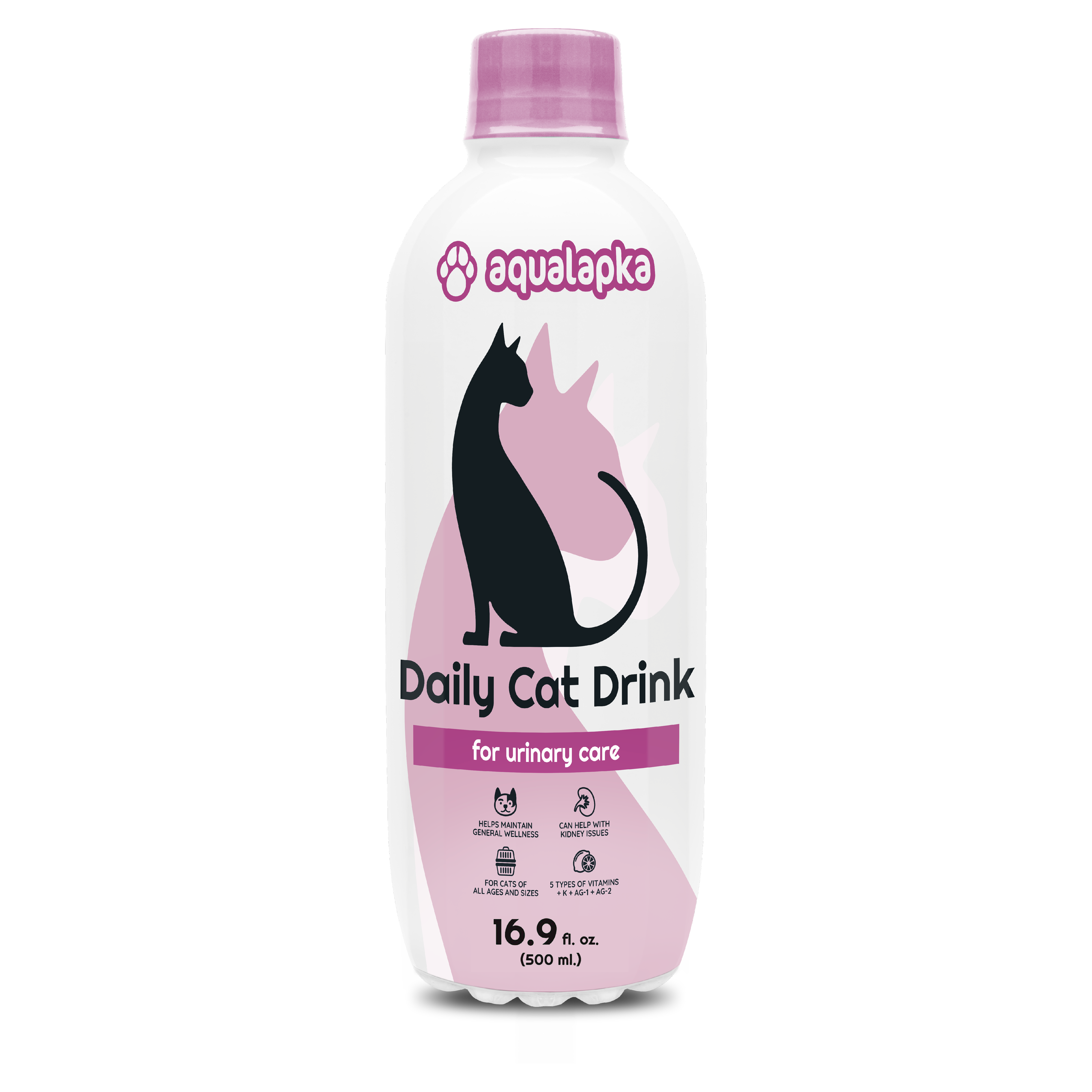 Aqualapka Daily Cat Drink with vitamins & minerals is enriched with with potassium, astragalus, and vitamins to support metabolism, and immune system of cats. It can also relieve the symptoms of their kidney problems.